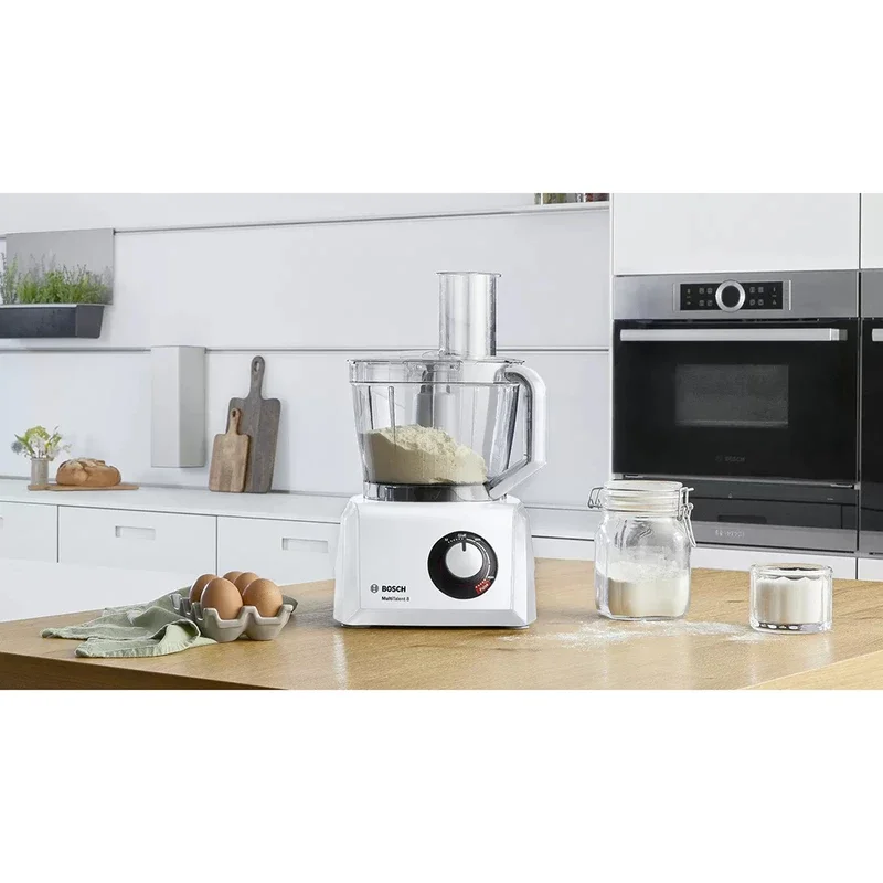 غذاساز ۵۰ کاره سری Multi Talent ۸ (بالاترین سری غذاسازهای شرکت بوش) مجهز به جدیدترین تکنولوژی ساخت تیغه شرکت بوش ( cut blade ) برای خرد کردن ایده آل و بی نقص مجهز به سنسور تشخیص سرعت برای ابزارهای مختلف ( Smart Tool Detection ) بیشترین ظرفیت کاسه بین غذاساز های بوش ( XXL Bowl ) قسمت های پلاستیکی (در تماس با مواد غذایی) فاقد BPA میباشند موتور قدرتمند ۱۱۰۰ واتی هوشمند پالسی کاسه XXL با ظرفیت ۳.۹ لیتر برای خمیر با وزن بیش از ۱.۵ کیلوگرم دیسک های رنده دو طرفه (رنده ریز، درشت و ورقه ای نازک و ضخیم) دارای خمیر زن و همزن دارای آب مرکبات گیر سیستم ایمنی چند گانه ساخت اسلونی با کیفیت بالا