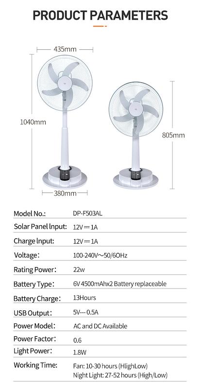 مشخصات پنکه شارژی ایستاده مدل DP-F503AL: